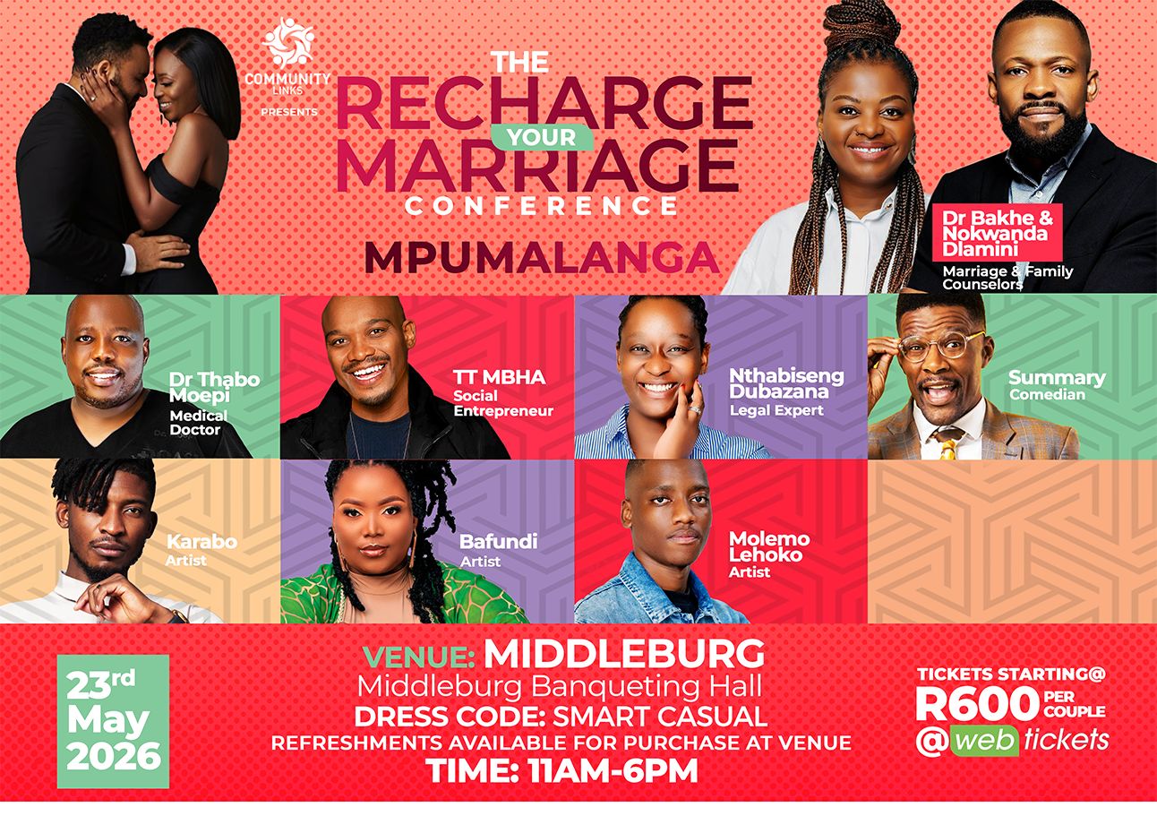 Join us for The Recharge Your Marriage Conference in Mpumalanga, a transformative event designed to strengthen and renew your relationship.