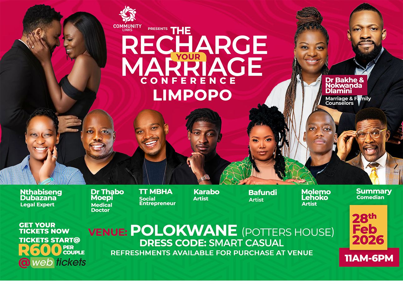 Join us for The Recharge Your Marriage Conference in Limpopo, a transformative event designed to strengthen and renew your relationship.